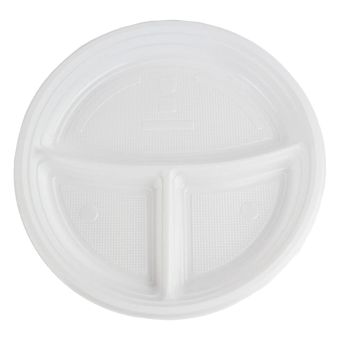 Plastikteller 3-geteilt Menüteller Ø22 cm PP weiß Rund Spülmaschinenbeständig